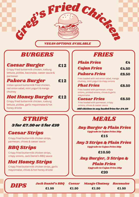 Through-out December our Fried Chicken pop-up menu is back and this time our legend of a Chef, Greg, is taking over! Greg has whipped up a brand new menu packed with bangin buttermilk fried chicken, stacked burgers, loaded fries & dips for days (GF & Vegan Options available)
